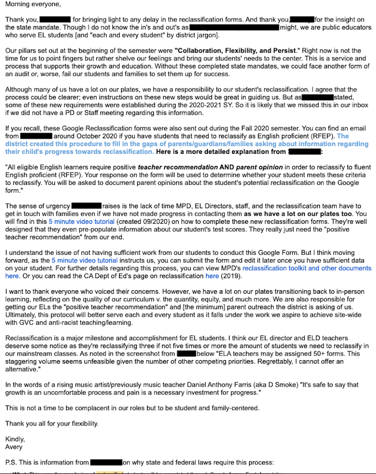 At the unfortunate expense of my colleague getting berated in an email thread, I realized that I had not gotten one of those all semester. Every instance of a Karen or entitled teacher in my department, I’ve either found/worked on a solution or shut it down. And this time, I stand by it. Peep the redacted email: